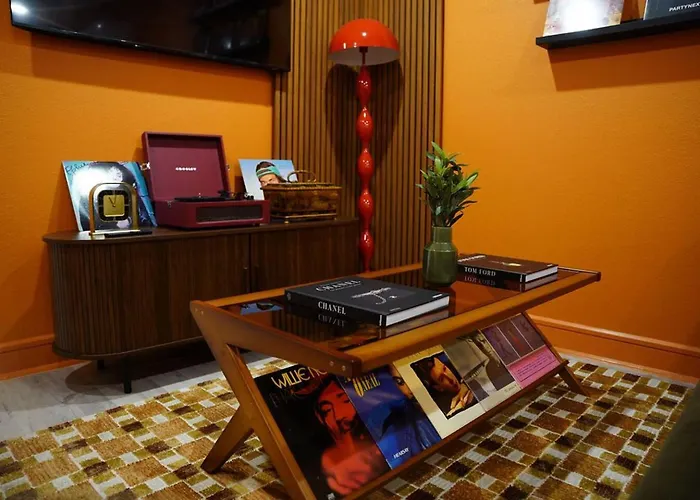 Disfruta de tus vacaciones en Dallas en el apartamento The Tangerine Retreat - Retro Dallas Downtown Vibe. Ideal para quienes buscan una experiencia auténtica, está situado a unos 10 minutos en coche del Acuario Mundial y a 3 km del Museo de Arte de Dallas.